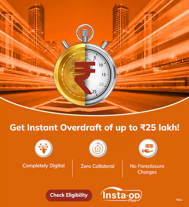 Instant Overdraft is an unsecured Overdraft (OD) facility that businesses can apply for online, without any documentation. The Overdraft can be used to serve day-to-day needs as well as sudden exigencies.