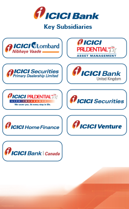 ICICI Bank is a large private sector bank in India offering a diversified portfolio of financial products and services to retail, SME and corporate customers. The Bank has an extensive network of branches and ATMs. It is at the forefront of leveraging technology and offering services through digital channels like mobile and internet banking.