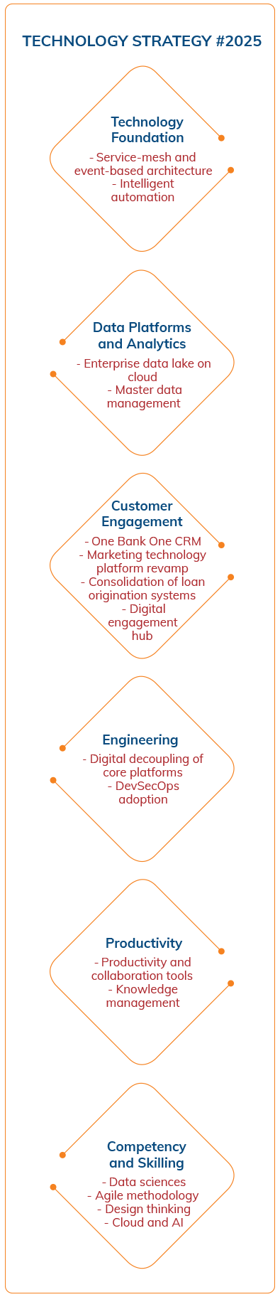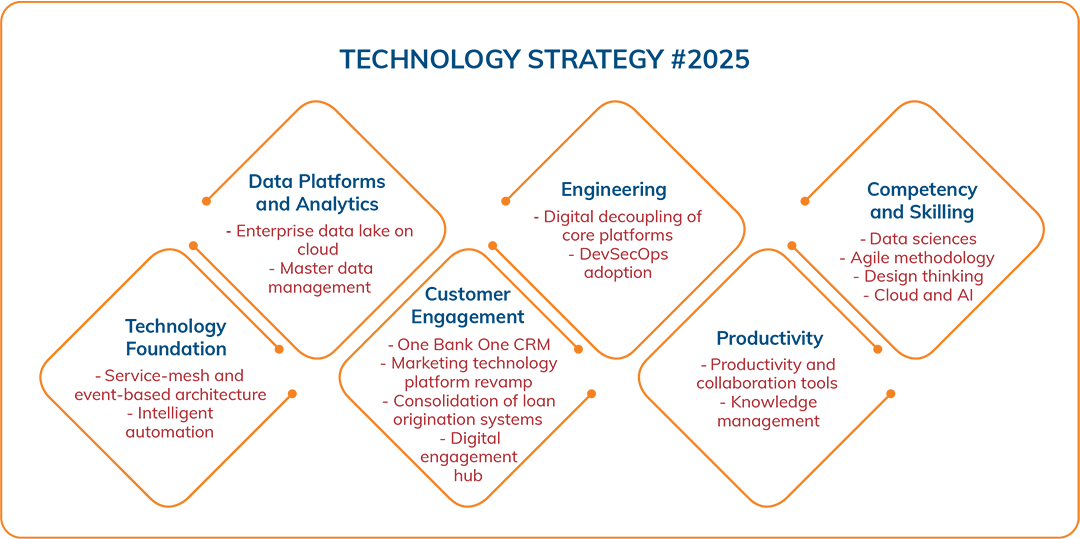As a part of our #2025 technology strategy, the Bank is creating an enterprise architecture framework across digital platforms, data and analytics, micro services-based architecture, cloud computing, cognitive intelligence and other emerging technologies. This is based on the pillars of scalability, modularity, flexibility and agility, resilience and reliability, and creating delightful and digitally-native customer experiences to enable sustainable profitable growth.