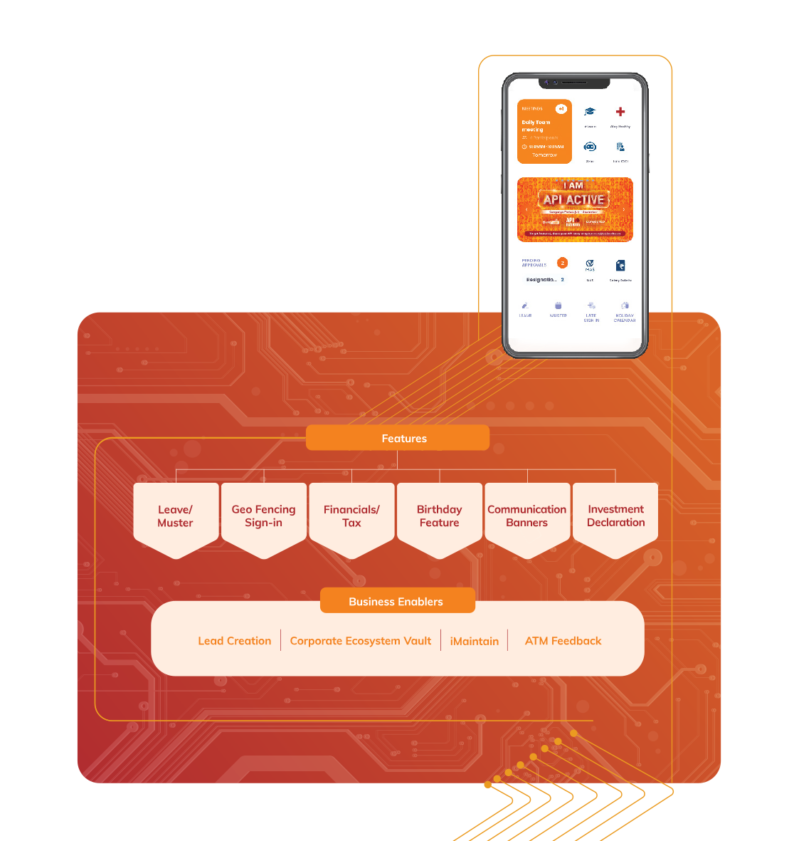 The Universe on the Move (UOTM) platform has evolved into a comprehensive business tool that is a companion across the entire employee life cycle. Through API-based integration, UOTM offers a host of services to employees and at the same time ensures security and accessibility. Artificial Intelligence (AI) and Machine Learning (ML) technology is used to provide customised user experience. The services are deeply integrated with core platforms such as Human Resource Management System and Sales CRM (Customer Relationship Management). UOTM allows tracking and reporting of specific tabs/icons/videos for analytics and product enhancements.