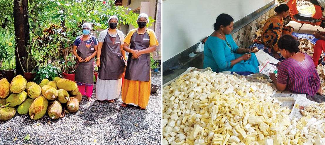 Women beneficiaries at the jackfruit processing unit in Kuzhur village, Thrissur district, Kerala.