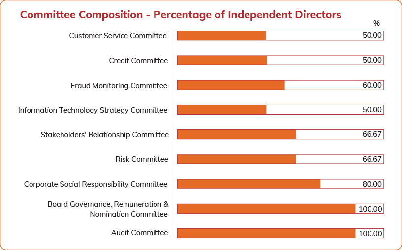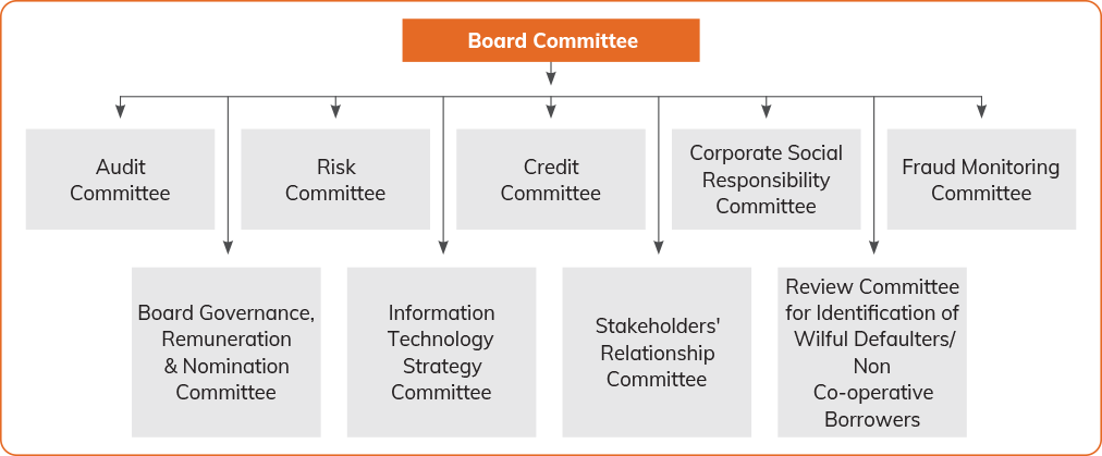 Our corporate governance structure is designed not only to fulfil regulatory and legal requirements, but to also create a culture of business ethics, supervision, and sustained value creation for all stakeholders. The Bank has developed a wide spectrum of policies, codes, and procedures to facilitate that and established Board Committees for their implementation, well supported by people, process and technology.