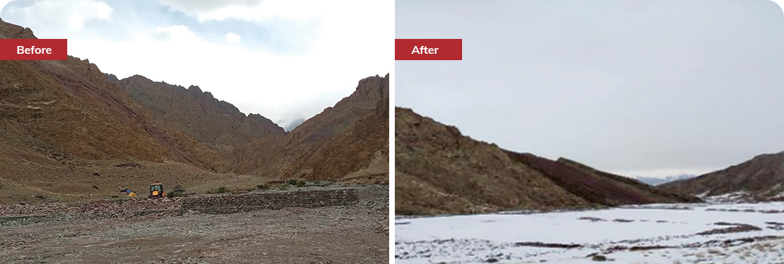 ICICI Foundation along with the local authorities created an artificial glacier that holds nearly 56,000 cubic metres of snow in winters. This glacier is located at 13,000 feet above the sea level which is 5,000 feet lower than its natural height. As a result, it melts earlier than the natural glacier and provides water to the villagers in April when they need it the most to sow their crops.