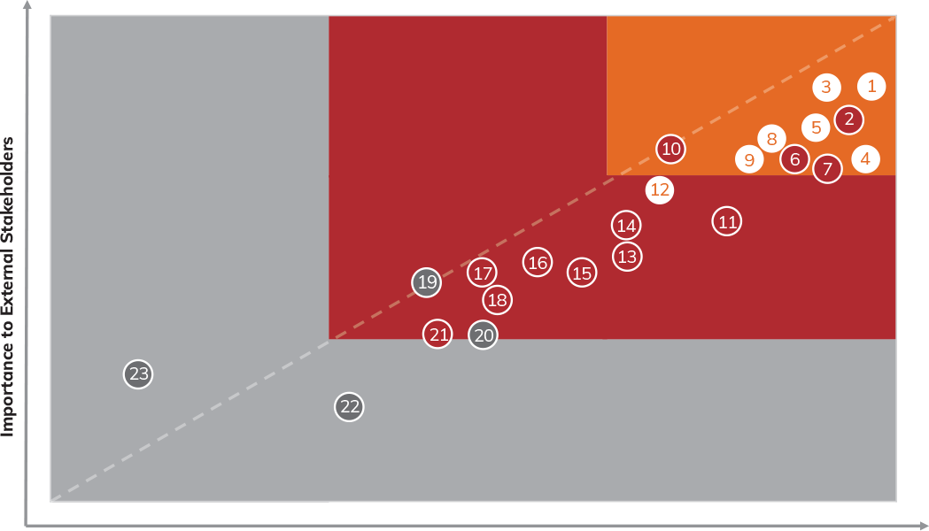 These issues are of medium to high importance to stakeholders and to ICICI Bank but since they do not have a major impact on the Bank's operations, therefore they fall in the medium category. We have considered these priority topics in the development of our internal strategy.