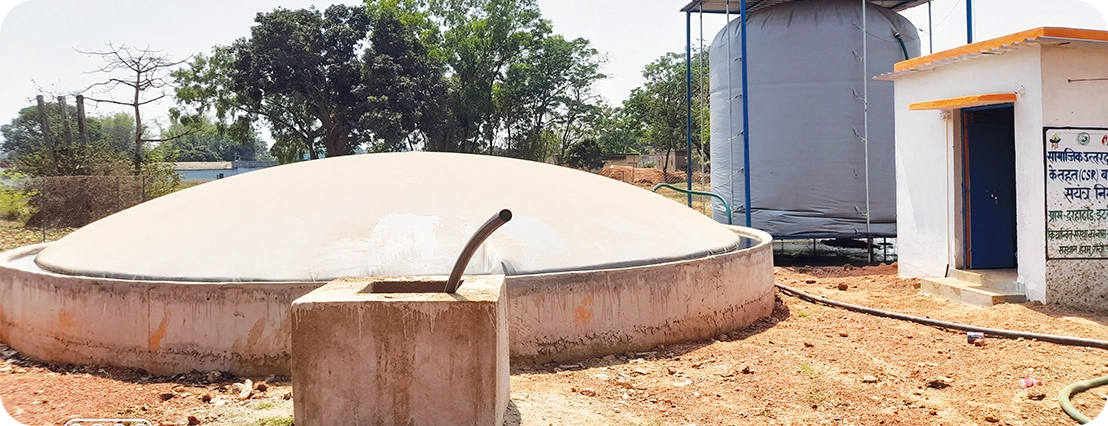 Biogas generation plant and storage unit at a village in Ranchi district, Jharkhand
