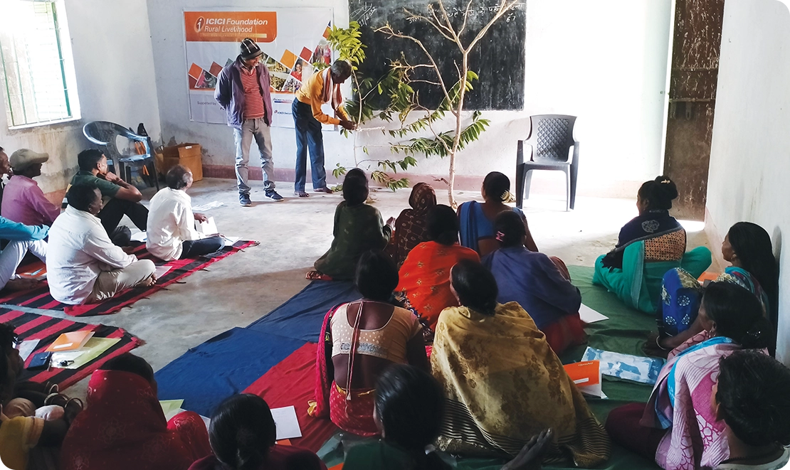 ICICI Foundation is committed to strengthening local ecosystems through its value chain-based projects and provide sustainable livelihoods to make villages self-sustaining. These interventions positively influence the village ecosystem by adding value to local produce, enhancing income, and offering market and credit linkages to the beneficiaries. They involve the local authorities including the Krishi Vigyan Kendras (KVK), a government body that provides vocational training to farmers. The interventions in the agriculture value chain include activities like animal husbandry, Climate Smart Agriculture, mushroom farming, dairy farming, vermicomposting, backyard poultry and goat rearing, among others.