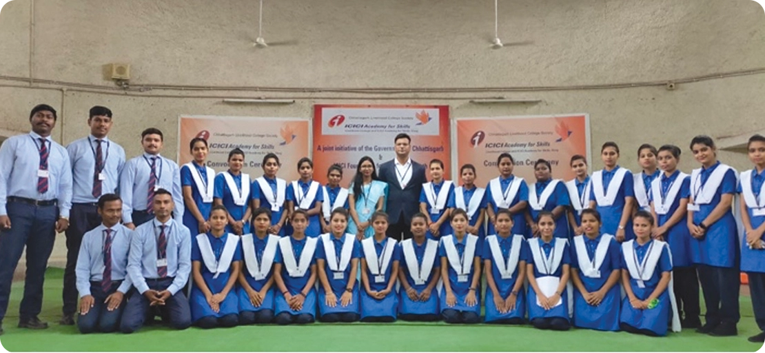 Since 2013, ICICI Academy for Skills (ICICI Academy) has been providing skill training with the aim of generating employment for underprivileged youth as part of a unique livelihood and skilling initiative. It provides sustainable job opportunities for such youth through industry-relevant and job-oriented training. The pro bono training initiative also includes skill development in financial literacy as well as soft skills and life skills.