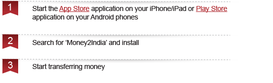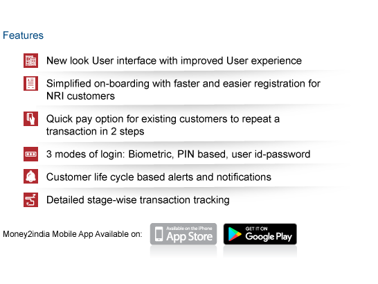 Money2India Terms and Conditions apply Unsubscribe: To unsubscribe from any further communication, please register yourself under the "Do not call" registry ICICI Bank Limited ("ICICI Bank") is incorporated in India and regulated by the Reserve Bank of India ("RBI") and maintains its corporate office in Mumbai, India. The products and services provided by ICICI Bank are subject to product/service specific terms & conditions. Please familiarize yourself with the terms and conditions applicable, available at www.icici.bank.in and www.money2india.com. The products and services are also subject to RBI rules/regulations, prevailing foreign exchange regulations & other applicable Laws. ICICI Bank reserves the right to modify/change all or any of the terms and conditions governing the products and services. ICICI Bank also reserves the right to discontinue the products and services without assigning any reasons whatsoever. Any references to timelines or service levels are only indicative and should not be construed to refer to any commitment by us or any other service provider. The information contained in this document is not intended to nor should it be construed to represent that ICICI Bank provides any products or services in any jurisdiction where it is not licensed or registered or authorized to do so. The information provided herein is not intended for distribution to, or use by, any person in any jurisdiction where such distribution or use would be contrary to law or regulation. ICICI Bank and the "I man" logo are the trademarks and property of ICICI Bank. |