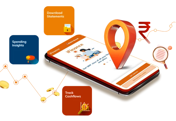 iFinance is a feature that helps in conveniently viewing all your bank accounts at one place and it is available on various digital platforms of the Bank such as Internet Banking and iMobile Pay app (for both individual and self-employed segments). It is powered by our Account Aggregator Technical Service (through Financial Information Providers or FIPs), which lets you fetch and view the information of all the Accounts linked to your registered mobile number, held with other banks as well. iFinance offers a comprehensive view of the bank balances, top spending and income categories, expenses, expense breakdowns, daily inflows, etc.